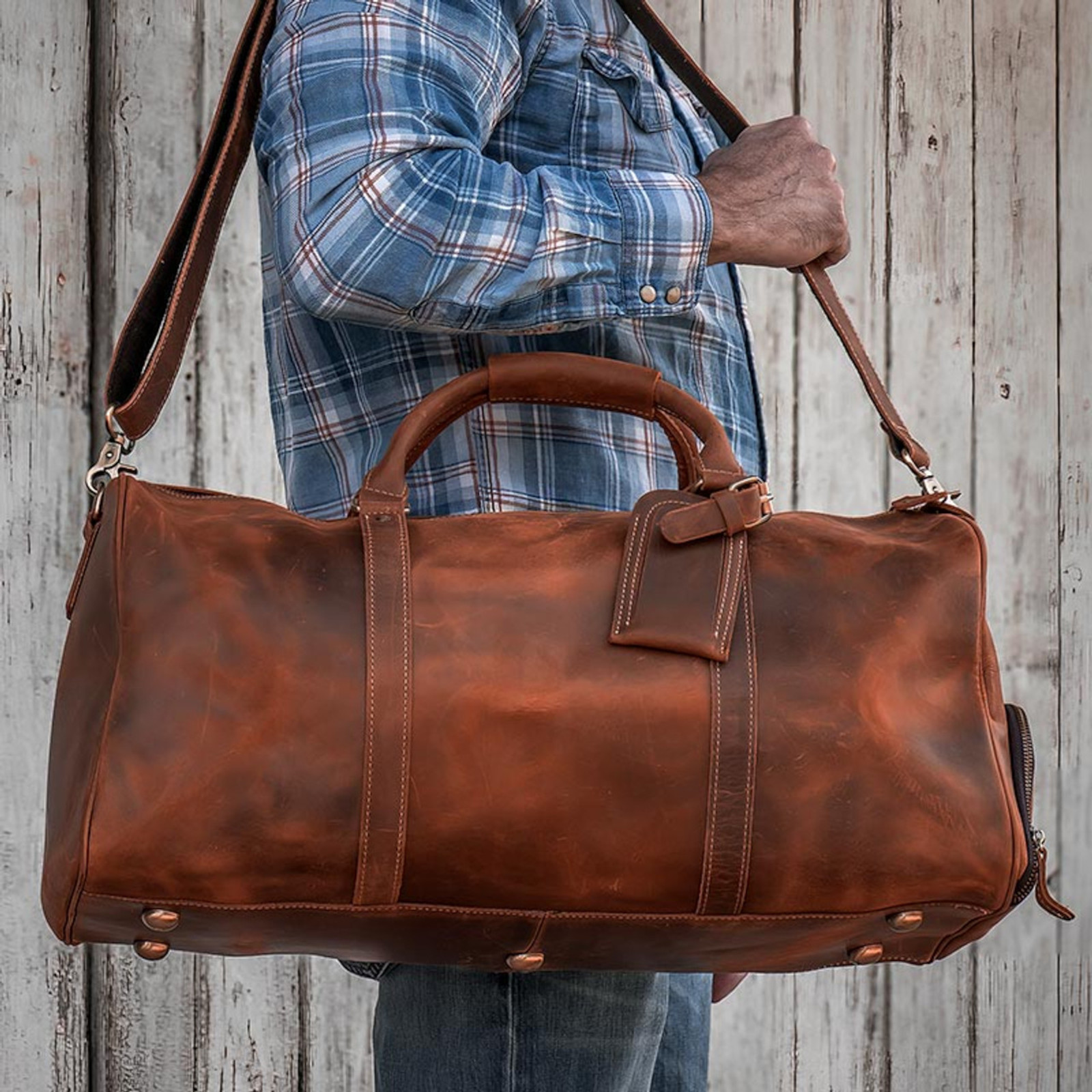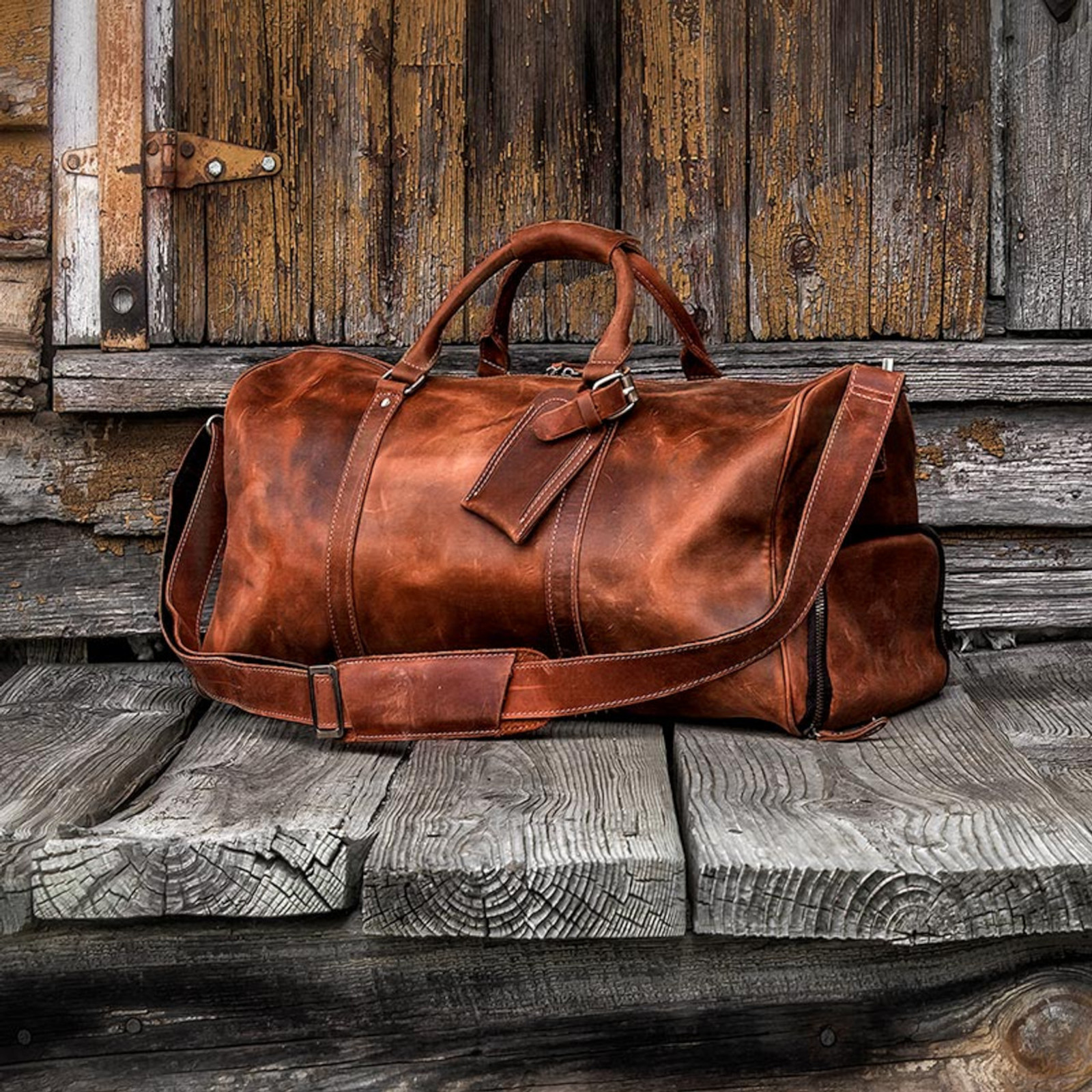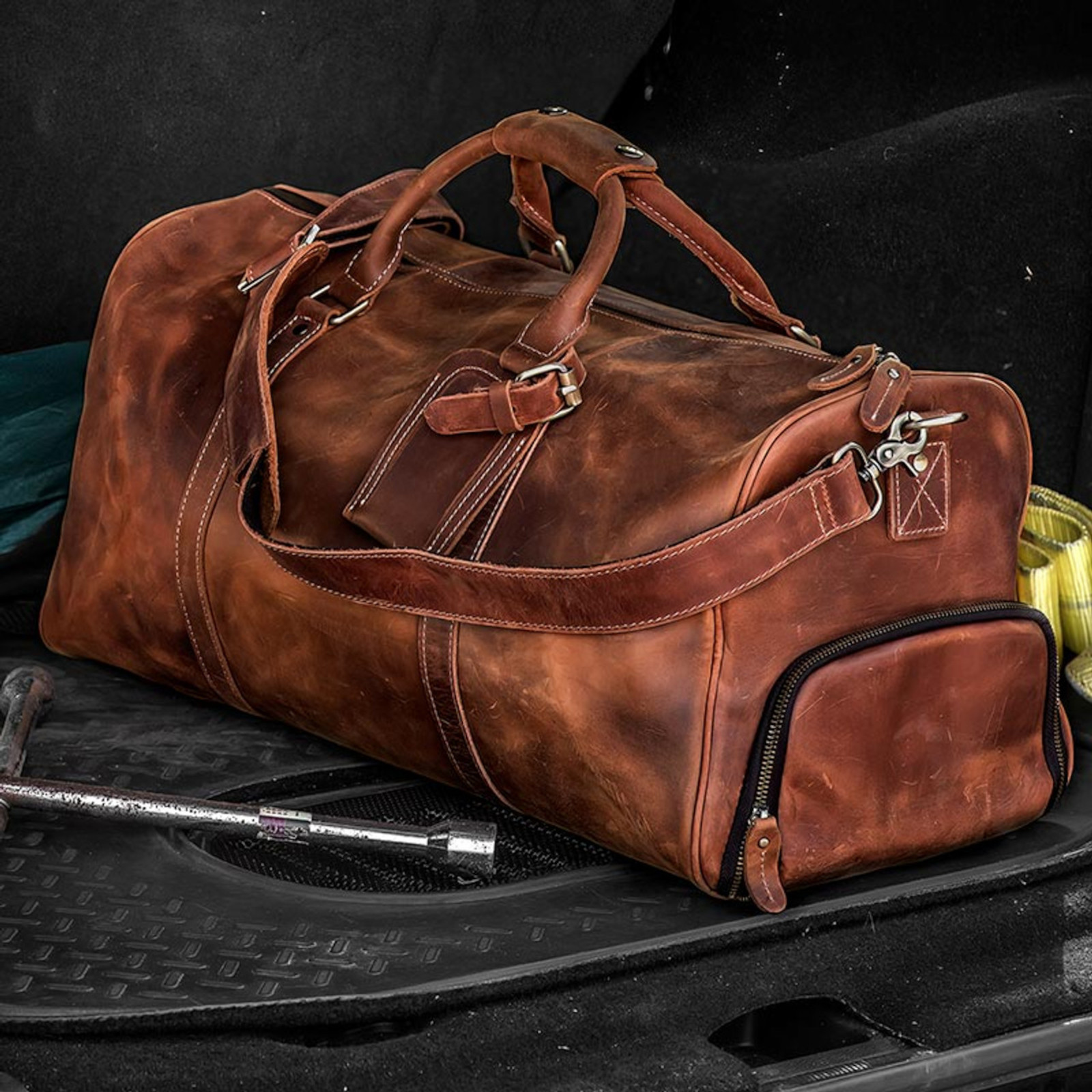 Rugged leather weekender crafted for weekend getaways, road trips, and bold adventures