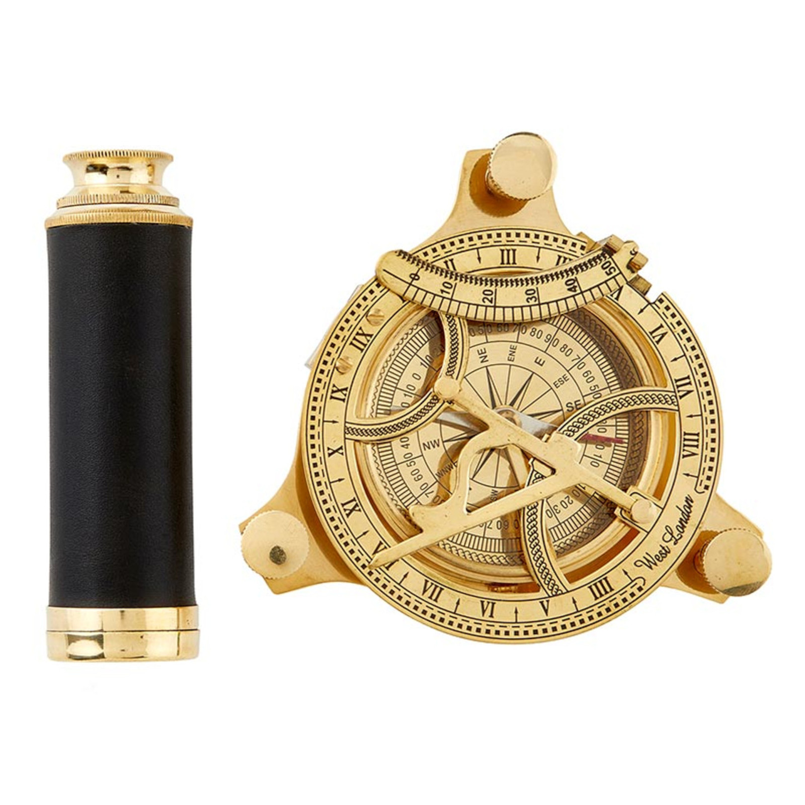 Polished brass and leather construction ensures durability and classic nautical elegance